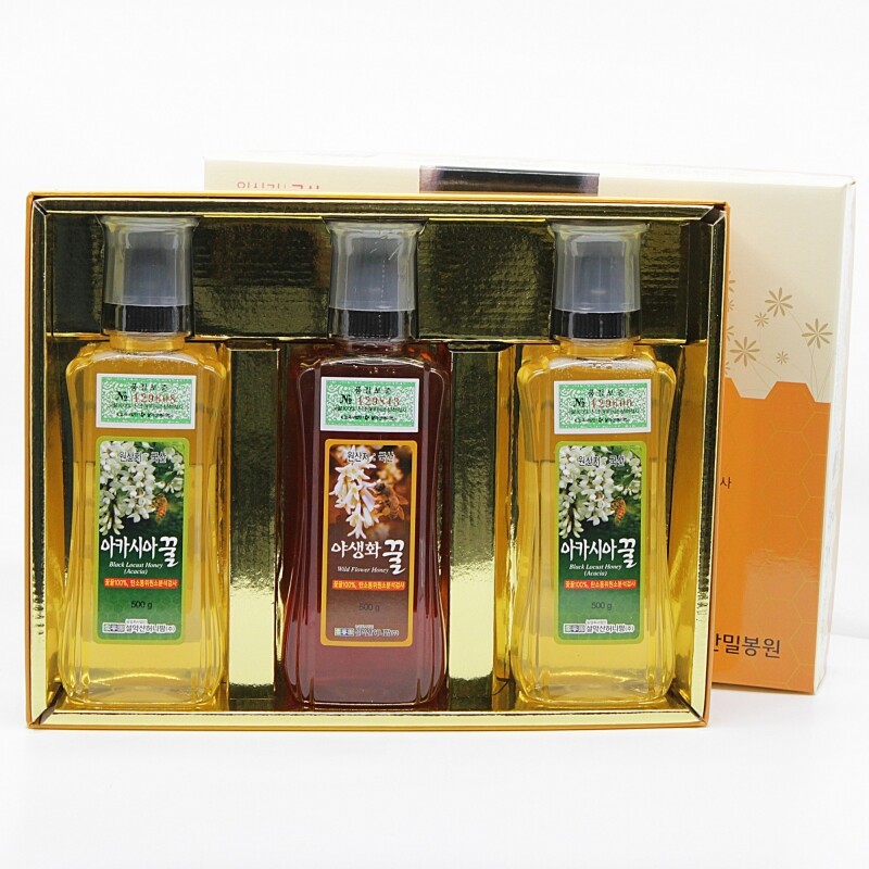 설악산허니팜 튜브꿀 선물세트(500gx3) 아카시아꿀 야생화꿀 밤꿀